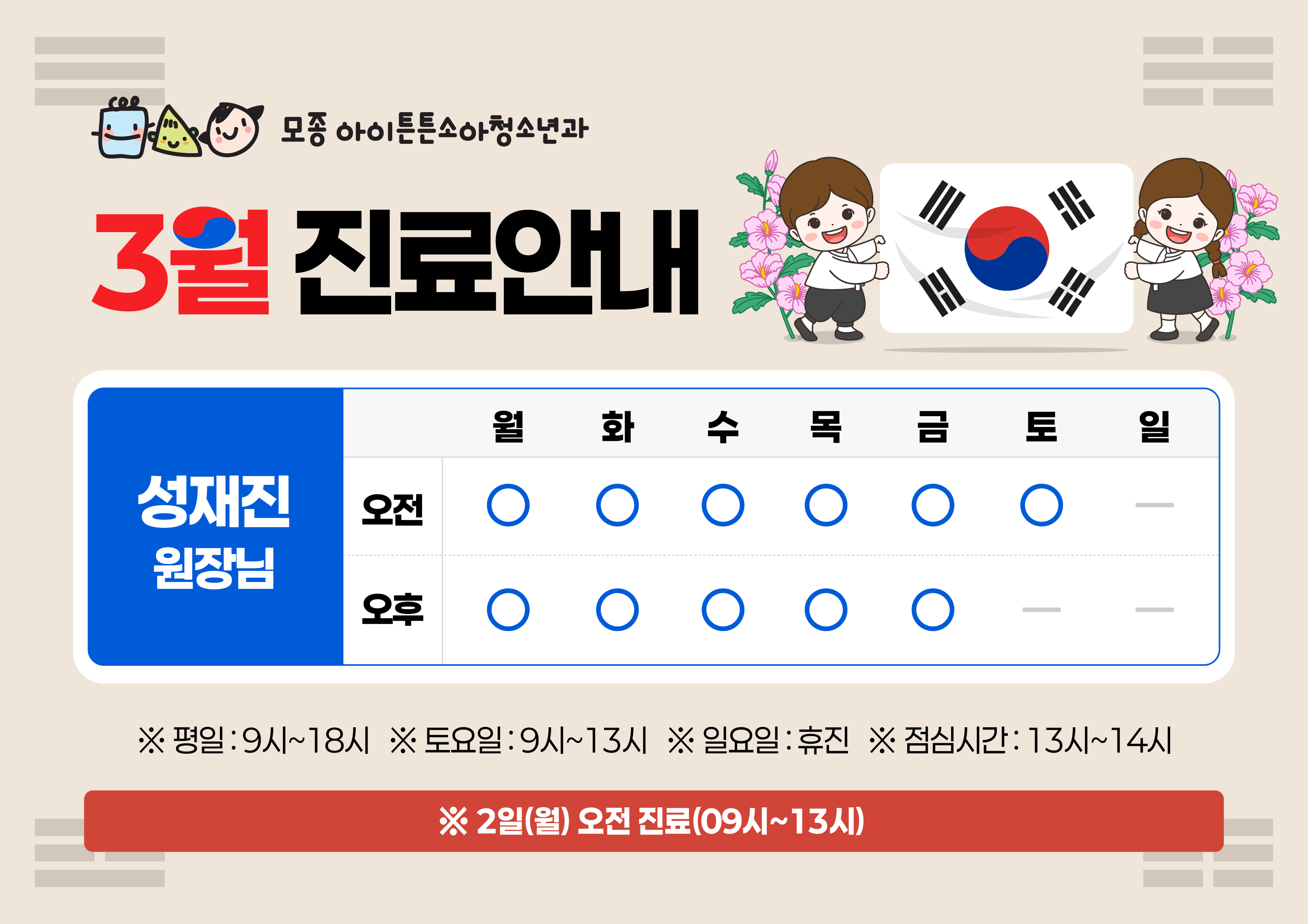 모종 아이튼튼소아청소년과의 차별화된 진료로 충분히 개선할 수 있습니다.